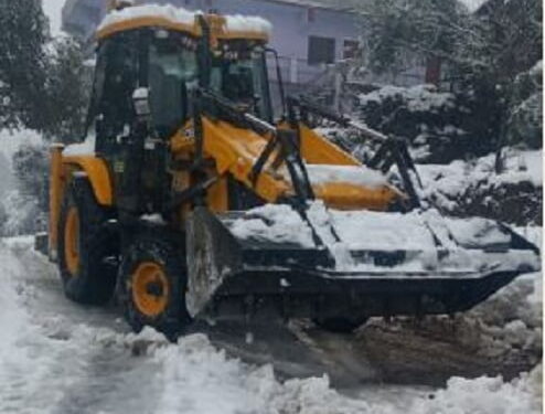 01- ताजे हिमपात के बाद जोशीमठ-औली रोड को खेालने का प्रयास करता लोनिवि का डोजर।