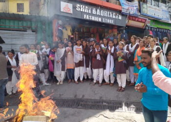 फोटो- मुख्य चैराहे पर उच्च शिक्षा मंत्री का पुतला दहन करते छात्र-छात्राएं प्रकाश कपरूवाण जोशीमठ। राजकीय महाविद्यालय जोशीमठ मंे प्रवक्ताओं...