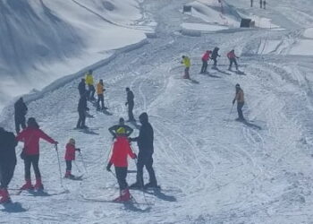 फोटो--औली की खूबसूरत ढलान पर स्कीइंग करते पर्यटक। प्रकाश कपरूवाण जोशीमठ। तीन दिनो से लगातार बर्फबारी के बाद बृहस्पतिवार को...
