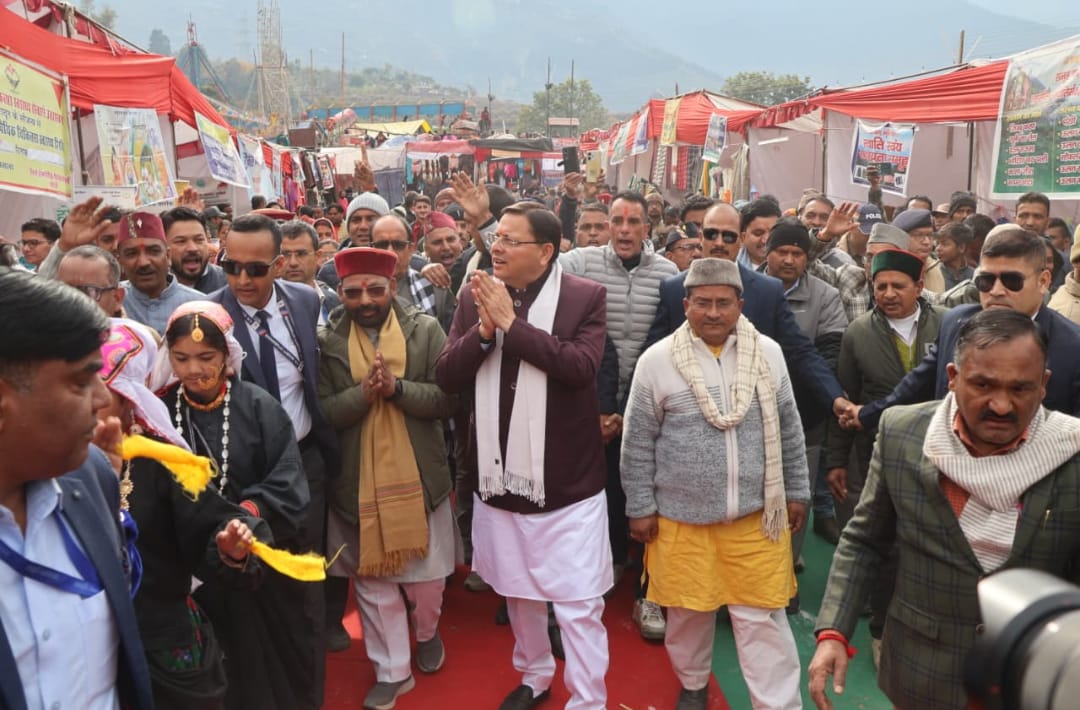 मुख्यमंत्री पुष्कर सिंह धामी 24वें बंड विकास औद्योगिक, पर्यटन, किसान एवं सांस्कृतिक मेले में प्रतिभाग हेतु शुक्रवार को सेमलडाला मैदान पीपलकोटी पहुंचे