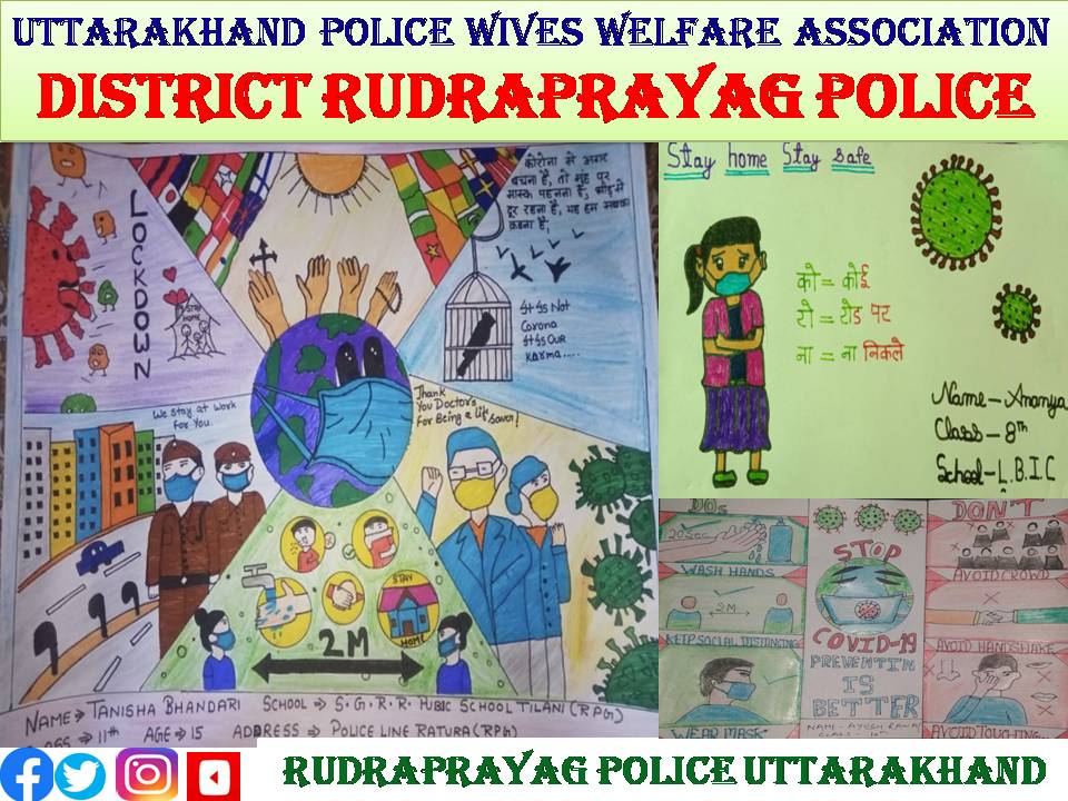 इसी चीज को ध्यान में रखते हुए जनपद रुद्रप्रयाग पुलिस परिवार के छोटे बच्चों की विभिन्न आयु एवं कक्षा वर्ग के अनुसार आनलाइन चित्रकारी प्रतियोगिता आयोजित करायी गयी। इस प्रतियोगिता में बच्चों द्वारा बढ़-चढ़कर भाग लिया गया। सभी बच्चों द्वारा आकर्षक चित्र बनाकर जनपद स्तर पर तैयार किये गये व्हट्सएप ग्रुप में प्रेषित किया गया (तैयार किये गये ग्रुप में बच्चों की माताओं को जोड़ा गया है।
