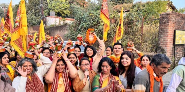 कोटद्वार गढ़वाल। श्री बालाजी मन्दिर सेवक समिति कोटद्वार के संस्थापक दिनेश एलावादी द्वारा भागवताचार्य पंडित भास्करानन्द जी बहुगुणा के सानिध्य में स्व० वीना एलावादी एवं समस्त पित्रों की स्मृति में दिव्य भागवत कथा ज्ञान यज्ञ का भव्य आयोजन किया जा रहा है।जिस उपलक्ष में हिन्दू पंचायती धर्मशाला से भव्य कलश यात्रा बद्रीनाथ मार्ग टाटा कामर्शियल होते हुए भागवत कथा स्थल श्री बालाजी मन्दिर कालाबड़ पहुंची।