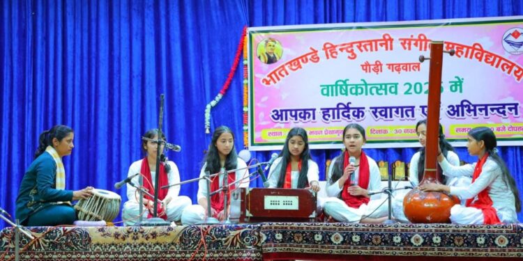 पौड़ी गढ़वाल। भातखंडे हिंदुस्तानी संगीत महाविद्यालय पौड़ी का वार्षिकोत्सव रविवार को प्रेक्षागृह, पौड़ी में आयोजित हुआ। वार्षिकोत्सव कार्यक्रम कला, संगीत और वाद्य प्रस्तुति का सुंदर संगम बनकर सामने आया। कार्यक्रम में महाविद्यालय के प्रशिक्षणरत बाल कलाकारों ने तबला, हारमोनियम, तानपूरा एवं गायन प्रस्तुतियों के माध्यम से हिंदुस्तानी शास्त्रीय संगीत की विविध छटाएँ बिखेरीं। छात्रों की लय, ताल व सुरों की सटीक पकड़ ने उपस्थित श्रोताओं को मंत्रमुग्ध कर दिया।