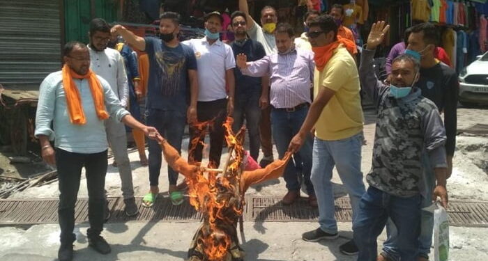 चीनी सैनिकों द्वारा भारतीय सैनिकों पर घात लगाकर हमला करने की साजिश को चीन की कायराना हरकत बताते हुए यहाॅ चीन सरकार व चीनी राष्ट्रपति शी जिनपिंग का पुतला दहन किया। भाजपाईयों द्वारा चीनी सरकार के विरोध मे जमकर नारेबाजी करते हुए पुतले का आग के हवाले किया गया। इस मौके पर लोगो ने चीनी सामान के बहिष्कार का भी संकल्प लिया ।