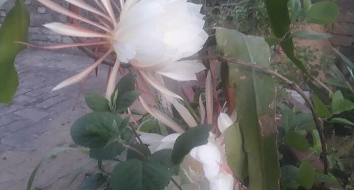मेरी पत्नी लीला देवी की मेहनत से यह नाजुक फूल खिला है। आज सुबह जब उन्होंने इसे खिला हुआ देखा तो बहुत खुश हुई। मुझसे आग्रह करने लगी कि इसकी फोटो लेकर इसे प्रकाशित करें। आपकी सेवा में प्रस्तुत है मैदानी ब्रह्मकमल का फूल।