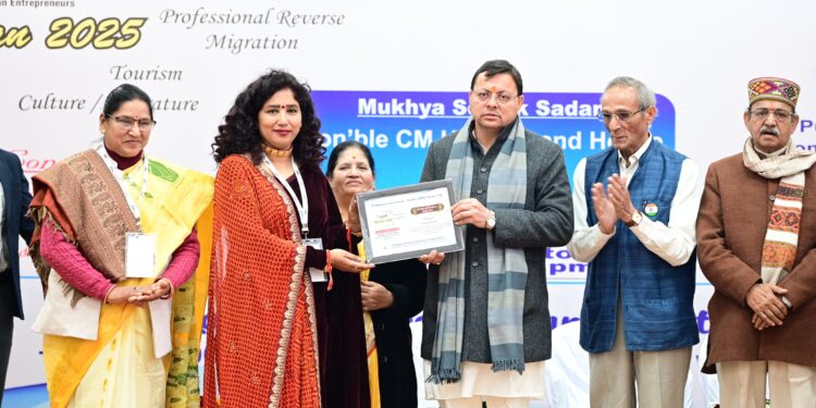मुख्यमंत्री श्री पुष्कर सिंह धामी ने शनिवार को मुख्य सेवक सदन देहरादून में बिजनेस उत्तरायणी संस्था द्वारा आयोजित Manthon-2025: 5th National Leader’s Summit (Women’s Special) कार्यक्रम में प्रतिभाग किया। इस अवसर पर मुख्यमंत्री ने स्टार्टअप, आत्मनिर्भरता एवं अन्य क्षेत्रों में विशिष्ट कार्य करने वाली महिलाओं को सम्मानित किया।