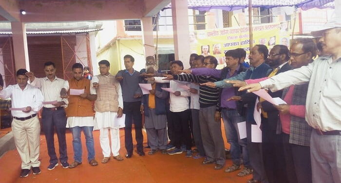 व्यापार संघ के नवनिर्वाचित अध्यक्ष सुरेन्द्र सिंह बिष्ट, सचिव मुकेश ढौंडियाल, कोशाध्यक्ष ललित नारायण शाह के साथ सभी सदस्यगणों ने शपथ ग्रहण किया। इस दौरान जिलाध्यक्ष प्रकाश मिश्रा, नगर पंचायत अध्यक्ष पुष्कर सिंह रावत प्रदेश महामंत्री राकेश कुमार डिमरी, नवीन वर्मा, महेन्द्र प्रकाश सेमवाल, दिग्पाल नेगी, डा 0 मातवर सिंह रावत, प्रेमबल्लभ खंडूरी, कुलदीप वर्मा, मारूती शाह, हर्षवर्धन पाण्डे, सुरेश कुमार बिष्ट, सुरेंद्र सिंह बिष्ट ने संबोधन किया। अपने संबोधन में वक्ताओं ने संगठन के महत्व पर प्रकाश डालते हुए कहा कि यही एक मात्र पवित्र संगठन है जिसमें किसी प्रकार की राजनीति, जाति, धर्म, लिंग भेद का कोई स्थान नही है केवल व्यापारी ही इसमें महत्वपूर्ण है ।