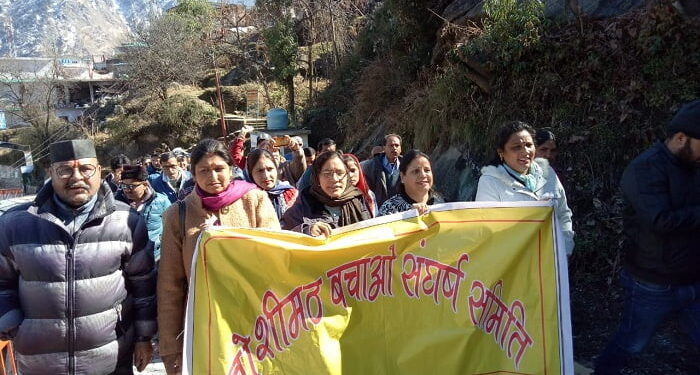 जोशीमठ को कटआफॅ कर हेलंग से एक वाईपास निर्माण कर आॅल वैदर रोड से जोशीमठ को हमेशा-हमेशा के लिए बदरीनाथ एव हेमकुंड साहिब-लोकपाल यात्रा मार्ग से अलग-थलग करने की साजिश के खिलाफ सीमांत धार्मिक एवं पर्यटन नगरी जोशीमठ के लोग बीती 21जनवरी से निंरतर आंदोलनरत है। प्रतिदिन तहसील मुख्यालय पर धरना कार्यक्रम जारी है। और एसडीएम को प्रतिदिन ज्ञापन भी सैंापे जा रहे है। लेकिन आंदोलन के 13दिन बीतने के बाद भी जब शासन/प्रशासन के स्तर से किसी भी प्रकार की वार्ता की पहल नही हुई तो अब आंदोलन को तेज करने का आवहान कर लिया गया। जोशीमठ के नागरिको व महिलाओ को बडी संख्या मे प्रतिदिन जुलूस/प्रदर्शन मे सरीक होने का आग्रह किया गया है। ताकि शासन, प्रशासन व केन्द्र सरकार तक आंदोलन की खबर पंहुचे और वे जोशीमठ के हित को देखते हुए पौराणिक धार्मिक मान्यता के अनुरूप जोशीमठ-नृंिसह मंदिर से ही आॅल वैदर रोड को जोडने का निर्णय ले सके।