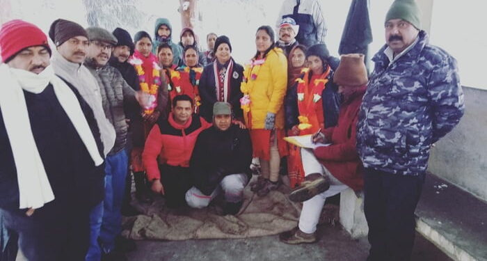 फोटो– कडाके की ठंड व हिमपात के वावजूद तहसील मुख्यालय पंहुचे आंदोलनकारी ।