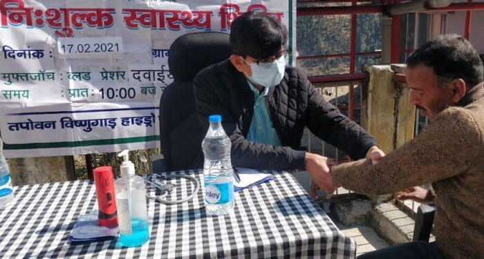 फोटो आपदा प्रभावित गांवों मे लोगों का परीक्षण करते एन टी पी सी के चिकित्सक।