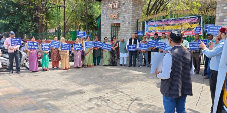 आज दिनांक 11-अप्रेल को प्रातः 11-30 बजे उत्तराखण्ड राज्य आंदोलनकारी मंच द्वारा देहरादून ही नहीं बल्कि पूरे प्रदेश में लगातार बढ़ते हुये सूखे नशे के खिलाफ जनजागरूकता अभियान के तहत गांधीपार्क में आयोजन किया गया।