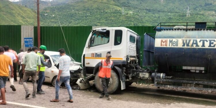 जवाडी बाईपास से 50 मीटर श्रीनगर की ओर सड़क किनारे खड़े पानी के टैंकर से श्रीनगर की ओर से आ रही कार संख्या डीएल 4 सीएनडी 9013 जा टकराई। कार में पांच व्यक्ति सवार थे। कार में दिल्ली से आए हुए यात्री सवार थे, जो केदारनाथ जा रहे थे।