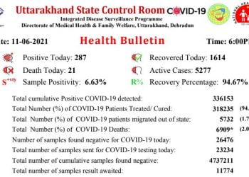 Read moreशुक्रवार को उत्तराखंड में कोरोना के 287 नए मामले सामने आये हैं, वहीं, इस महामारी से 21 मरीजों की मौत...