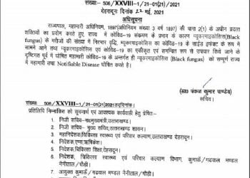 Read moreदेहरादून। उत्तराखंड ने भी ब्लैक फंगस को महामारी घोषित कर दिया गया है। स्वास्थ्य सचिव डा.पंकज कुमार पांडे के हस्ताक्षरों...