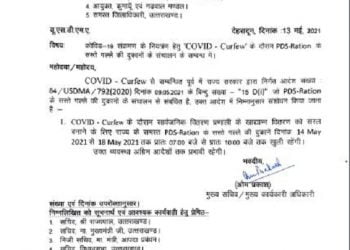 Read moreदेहरादून। 11 मई से 18 मई तक कोविड कर्फ्यू के दौरान पहले जारी किए गए आदेश के अनुसार पीडीएस राशन...