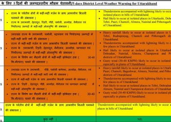 Read moreदेहरादून। मौसम विभाग ने अगले दो दिनों के लिए अलर्ट जारी किया है। पहाड़ में लगातार ओलावृष्टि, बादल फटने की...