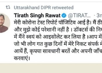 Read moreदेहरादून। मुख्यमंत्री तीरथ सिंह रावत कोरोना पाजिटिव हो गए हैं। उन्होंने खुद को आइसोलेट कर लिया है। चिकित्सकों की निगरानी...