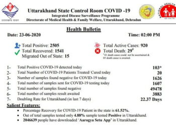 Read moreदेहरादून। उत्तराखंड में कोरोना संक्रमण की गति कम नहीं हो रही है। दोपहर दो बजे जारी किए गए हेल्थ बुलेटिन...