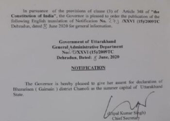 Read moreदेहरादून। भराड़ीसैंण (गैरसैंण) जिला चमोली को उत्तराखंड राज्य की ग्रीष्मकालीन राजधानी घोषित करने के संबंध में अधिसूचना जारी की गई...