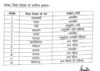 Read moreदेहरादून। पंचायतराज विभाग ने बारह जिलों के जिला पंचायत अध्यक्षों के आरक्षण की अनंतिम सूची जारी कर दी है। बारह...