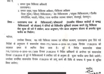 देहरादून। मंत्री चिकित्सा, स्वास्थ्य एवं परिवार कल्याण एवं उत्तराखंड सरकार के निर्देशानुसार स्वास्थ्य महानिदेशालय ने 17 सितंबर 19 को सरकारी...