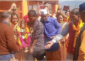 थराली से हरेंद्र बिष्ट।महाशिवरात्रि के पावन पर्व पर तलवाड़ी में हनुमान मंदिर के पास नंदा भगवती की अष्टधातु की मूर्ति...