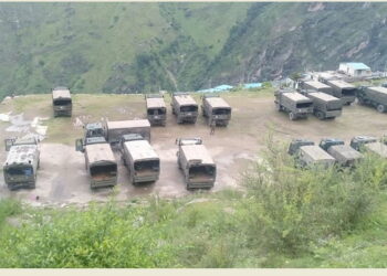 फोटो- नगर के एकमात्र खेल मैदान मे खडे सेना के वाहन ।प्रकाश कपरूवाणजोशीमठ। नगर के एकमात्र खेल मैदान से सेना...