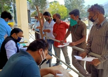 फ़ोटो..गौचर पहुंचे प्रवासी जाँच के लिये पंक्तिबद्ध।प्रकाश कपरवानजोशीमठ, चमोली। चमोली जनपद से सात अन्य मरीजों के सैंपल जाॅच के लिए...
