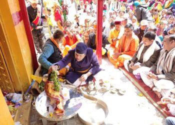 Read moreफोटो- -माता मूर्ति मंदिर माणा मे माता मूर्ति एव भगवान उद्वव का अभिषेक करते हुए मुख्य पुजारी श्री रावल ।...