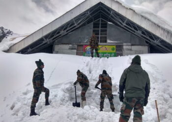 Read moreफोटो- हेमकुंड साहिब के मुख्य द्वार से बर्फ हटाते सेना के जवान । प्रकाश कपरूवाण जोशीमठ। बदीनाथ में बारिश व...