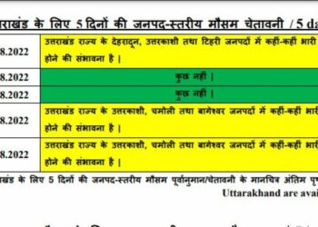 Read moreदेहरादून। मौसम विज्ञान विभाग के देहरादून केंद्र द्वारा पांच दिनों का पूर्वानुमान जारी किया गया है। मौसम विज्ञान विभाग द्वारा...