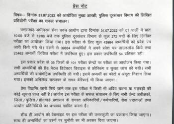 Read moreदेहरादून। उत्तराखंड अधीनस्थ सेवा चयन आयोग द्वारा आयोजित पुलिस तथा दूर संचार विभाग में मुख्य आरक्षी के 272 पदों के...