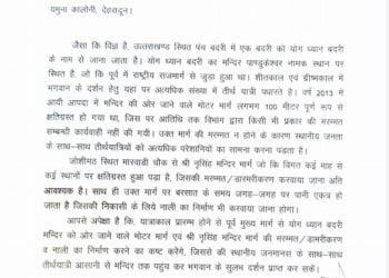 Read moreप्रकाश कपरूवाण देहरादून/जोशीमठ। बदरी-केदार मंदिर समिति के उपाध्यक्ष किशोर पंवार ने लोनिवि के मुख्य अभियंता को पत्र भेजकर जोशीमठ में...