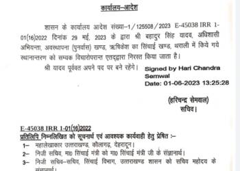 Read moreरिपोर्ट हरेंद्र बिष्ट। थराली। जनप्रतिनिधियों एवं ठेकेदारों ने सिंचाई खंड थराली के प्रभारी अधिशासी अभियंता पर तमाम आरोप लगाते हुए...