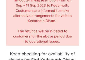 Read moreरिपोर्ट:सत्यपाल नेगी आवश्यक सूचना : केदारनाथ धाम के लिए 7 सितंबर से 11 सितंबर तक हेलीकॉप्टर सेवा बंद रहेगी। IRCTC...