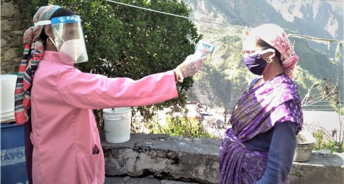 फोटोः जोशीमठ में जांच करती आशा कार्यकत्री