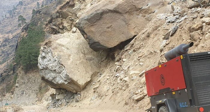 फोटो- विष्णुप्रयाग से बदरीनाथ तक चैडीकरण कार्य बंद होने के बाद सड़कों के ऊपरी ओर बोल्डर कुछ इस तरह लटके हुए हैं।
