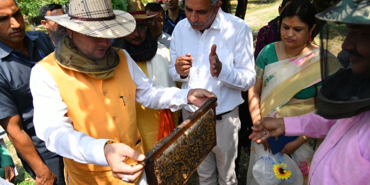 देहरादून। मुख्यमंत्री आवास में गुरूवार को शहद निष्कासन कार्यक्रम का आयोजन किया गया। मुख्यमंत्री श्री पुष्कर सिंह धामी द्वारा शहद निष्कासन कार्यक्रम का अवलोकन किया गया। इस दौरान लगभग 25 किग्रा शहद निकाला गया। मुख्यमंत्री ने उद्यान विभाग के अधिकारियों को निर्देश दिये कि मौनपालन को पायलट प्रोजक्ट की तरह लिया जाय। जनपद चम्पावत में हाईटेक मौनपालन प्रशिक्षण केन्द्र की स्थापना की जाय। मौनपालन की सम्भावनाओं के सम्बन्ध में पीपीटी के माध्यम से विस्तृत विवरण उपलब्ध कराया जाय।