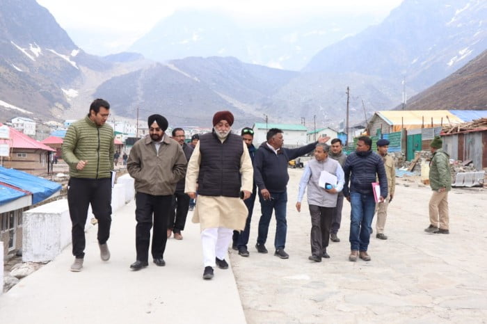 श्री केदारनाथ धाम में चल रहे निर्माण कार्यों का मुख्य सचिव डॉ एसएस संधु द्वारा स्थलीय निरीक्षण कर जायजा लिया गया। इसके साथ ही उन्होंने निर्माण कार्यों से संबंधित अधिकारियों के साथ बैठक कर धाम में चल रहे निर्माण कार्यों को शीर्ष प्राथमिकता के साथ शीघ्र पूर्ण करने के निर्देश संबंधित अधिकारियों व कार्यदायी संस्थाओं को दिए।