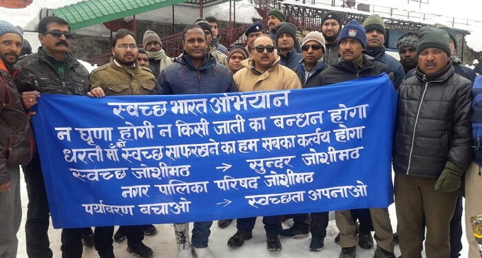 जोशीमठ। गढवाल आयुक्त के नेतृत्व में औली में चल स्वच्छता अभियान।