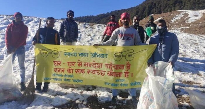 जोशीमठ। स्वच्छता पखवाडे के तहत नगर पालिका ने हिमक्रीडा केन्द्र औली में भी चलाया स्वच्छता अभियान।