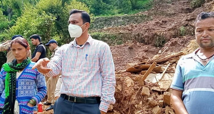खिर्सू के नौगांव में अतिवृष्टि व भूस्खलन से नुकसान का जायजा लेते हुए निरीक्षण किया।