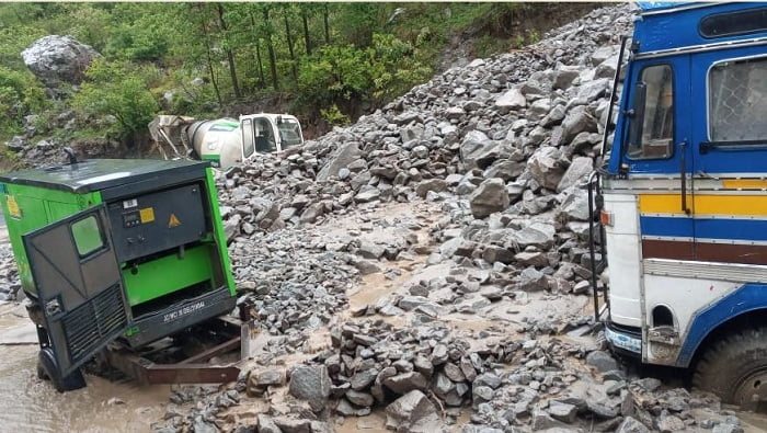 फोटोज- वेनाकुली-हनुमान चटटी में बादल फटने के बाद मलबे में दबे वाहन व मशीनें।