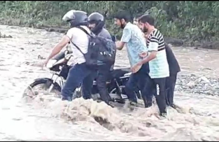 बताया जा रहा है कि पहाड़ी क्षेत्रों में लगातार हो रही बारिश के कारण अचानक बिजली की तेज गड़गड़ाहट के साथ पहाड़ी क्षेत्र में बादल फटने के कारण नदी का जलस्तर काफी तेजी से बढ़ने लगा। लोग एक दूसरे की मदद के सहारे वाहनों को आर पार करवाने की कोशिश करते रहे।