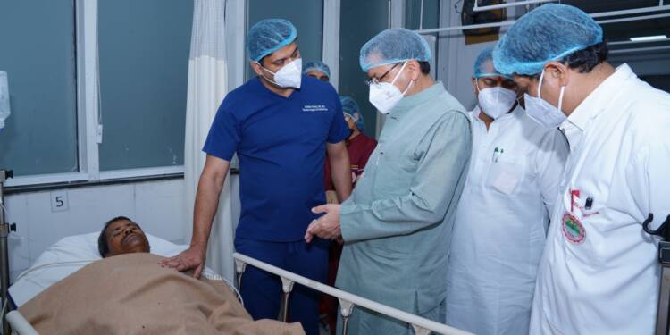 मुख्यमंत्री श्री पुष्कर सिंह धामी ने एम्स ऋषिकेश जाकर जनपद चमोली की दुखद घटना में घायल हुए 06 घायलों का हालचाल जाना। उन्होंने घायलों की शीघ्र स्वास्थ्य लाभ की कामना की है। मुख्यमंत्री ने घायलों के समुचित इलाज के संबंध में एम्स के चिकित्सकों से भी जानकारी प्राप्त की। उन्होंने घायलों के इलाज में कोई कमी न रहे, इसकी भी चिकित्सकों से अपेक्षा की। मुख्यमंत्री श्री पुष्कर सिंह धामी घटना की जानकारी प्राप्त होते ही चमोली के लिए रवाना हो गये थे, किन्तु मौसम की खराबी के कारण उन्हें वापस आना पड़ा। उसके बाद मुख्यमंत्री ने एम्स ऋषिकेश जाकर घायलों का हालचाल जाना।