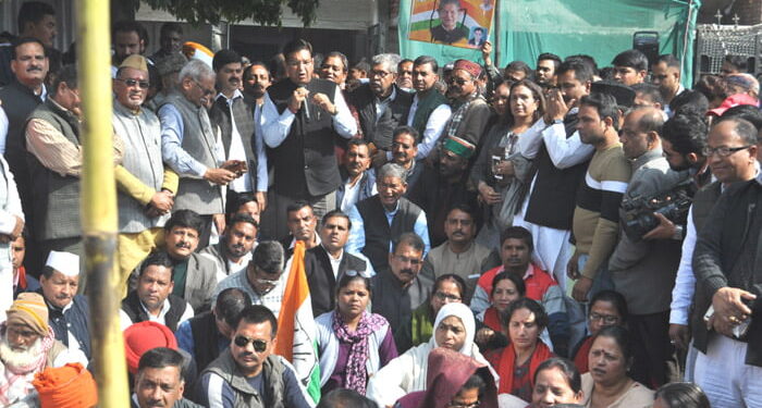 रुड़की में जहरीली शराब कांड के खिलाफ और गन्ना किसानों की समस्याओं को कांग्रेस ने सड़क से लेकर सदन तक सरकार के खिलाफ घेराबंदी की। गन्ना किसानों को भुगतान न होने को लेकर विधानसभा में कांग्रेस विधायकों ने जमकर हंगामा किया। विधायक नारेबाजी करते हुए गन्ना लेकर वेल पर पहुंच गए और जमकर नारेबाजी की। पूर्व मुख्यमंत्री एवं कांग्रेस के राष्ट्रीय महासचिव अपनी घोषणा के अनुरूप विधानसभा के पास धरना देने के लिए पहुंचे। उसके साथ कार्यकर्ताओं भी खासी भीड़ थी। कई कार्यकर्ता हाथों में गन्ना लेकर चल रहे थे। इस दौरान पुलिस ने कांग्रेसियों को रिस्पना पुल से पहले रोक दिया, इस पर हरीश रावत सड़क किनारे ही धरने पर बैठ गए। उन्होंने उपवास भी रखा। हरीश रावत ने कहा कि प्रदेश सरकार हर मुद्दे में फेल हो गई है। चीनों मिलों से गन्ना किसानों को करीब तीन सौ करोड़ का भुगतान भी नहीं हो पा रहा है। सरकार को किसानों की कोई चिंता तक नहीं है। उन्होंने कहा कि जहरीली शराब कांड सरकार की गलत आबकारी नीति का नतीजा है। उनकी सरकार के कार्यकाल में प्रदेश की आबकारी नीति बेहतर थी। अब प्रदेश की जनता भाजपा सरकार को मुंहतोड़ जवाब देगी। इस मौके पर कांग्रेस प्रदेश अध्यक्ष प्रीतम सिंह, पूर्व विधायक दिनेश अग्रवाल, मंत्री प्रसाद नैथानी भी मौजूद रहे।
