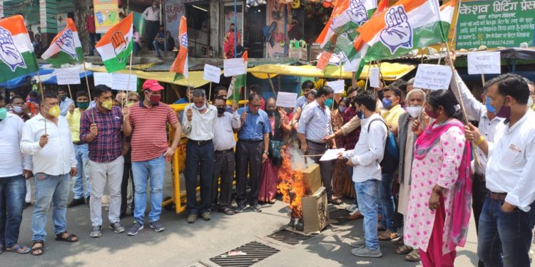 प्रदेश कांग्रेस कमेटी के आह्वान पर यहां जिला कांग्रेस कमेटी के पदाधिकारियों एवं कार्यकर्ताओं ने पूर्व कैबिनेट मंत्री राजेन्द्र भंडारी के नेतृत्व में बढ़ती मंहगाई, बेरोजगारी, महिलाओं की सुरक्षा, कुंभ में कोविड 19 की जांच में हुए घोटाले की जांच की मांग को लेकर जुलूस निकाला कर प्रर्दशन करते हुए धरना दिया।