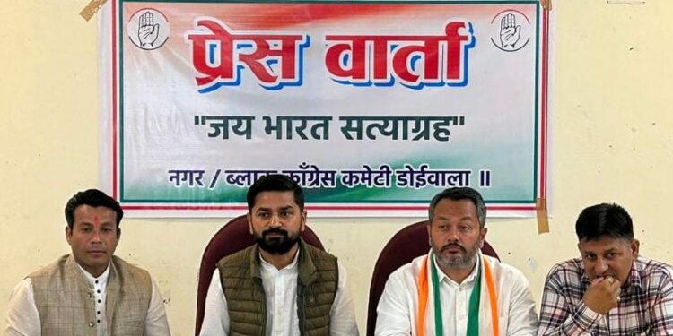 डोईवाला, (प्रियांशु सक्सेना)। नगर पालिका सभागार में नगर एवं ब्लॉक कांग्रेस कमिटी की ओर से प्रेस वार्ता का आयोजन किया गया। शनिवार को हुई प्रेस वार्ता में कांग्रेस के नवनियुक्त परवादून जिला अध्यक्ष मोहित उनियाल ने कहा कि मोदी सरकार द्वारा षड्यंत्र के तहत पूर्व कांग्रेस अध्यक्ष राहुल गांधी की संसद सदस्यता समाप्त किए जाने के विरोध में कांग्रेस पार्टी द्वारा प्रदेश में लगातार एक माह तक “जय भारत सत्याग्रह” कार्यक्रम आयोजित किए जाने हैं।