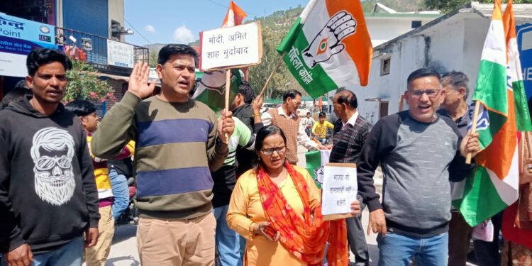 गौचर (ईश्वर राणा)। प्रदेश व जिला कांग्रेस कमेटी की आव्हान पर नगर कांग्रेस कमेटी के नेतृत्व में कांग्रेस के पूर्व राष्ट्रीय अध्यक्ष राहुल गांधी की संसद से सदस्यता रद्द कर लोकतंत्र की हत्या केंद्र सरकार द्वारा लगातार देशभर में तानाशाही करने विपक्षियों पर लगातार सरकारी तंत्र का दुरुपयोग करने केंद्र की तानाशाही सरकार के खिलाफ प्रदर्शन करते हुए रामलीला मैदान से पुलिस चौकी होते हुए ग्रुप चौराहा पर केंद्र सरकार का पुतला दहन किया गया इस दौरान कार्यकर्ताओं ने हाथों पर कांग्रेस व राहुल गांधी जिन्दाबाद की तकतियां लिए एव केन्द्र की तानाशाही भाजपा सरकार के मुर्दाबाद की तकतियां लिए राहुल गांधी तुम सर्घष करो देश आपके साथ है के नारे भी लगाये गये।