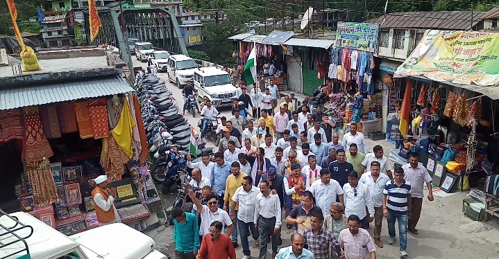 उत्तराखंड सेवा चयन आयोग में नियुक्तियों की सीबीआई जांच किए जाने एवं महंगाई पर नियंत्रण पाने की मांग को लेकर तहसील मुख्यालय थराली में जुलूस निकाल कर प्रर्दशन करते हुए एक बैठक का आयोजन किया गया।